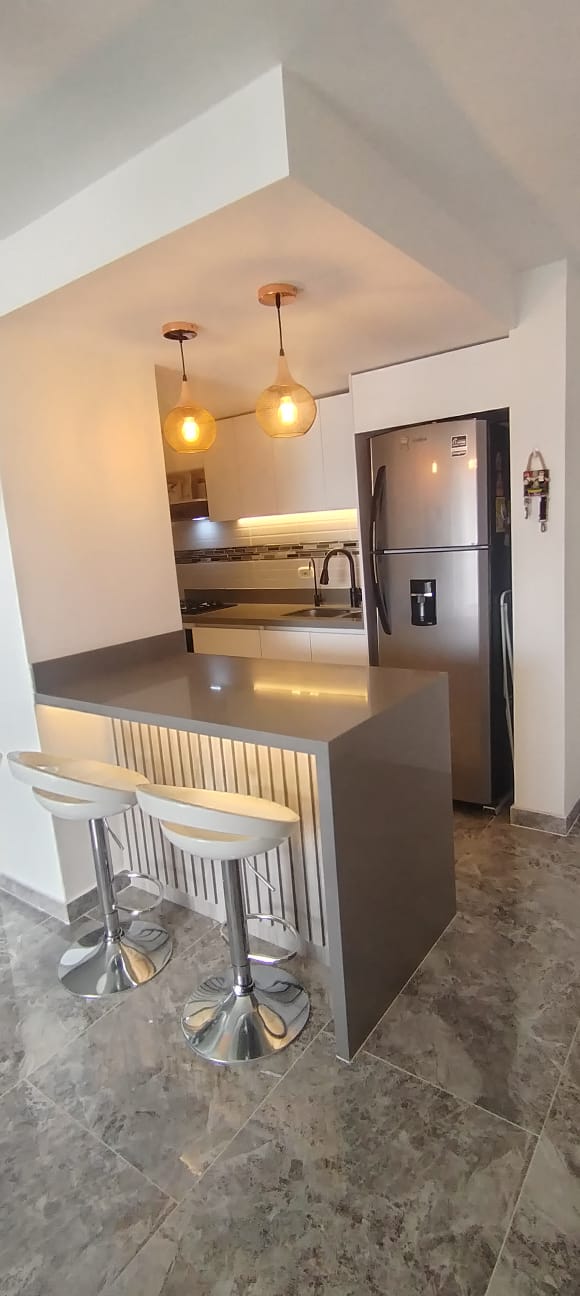 Se vende apartamento con acabados de alta calidad, ubicado en el Conjunto Residencial SEPIA, con un área de 64 m². Cuenta con cocina integral de alto brillo, equipada con horno y extractor de olores, mesón y mesón auxiliar en cuarzo, además de sistema de purificación de agua en cocina y baños.