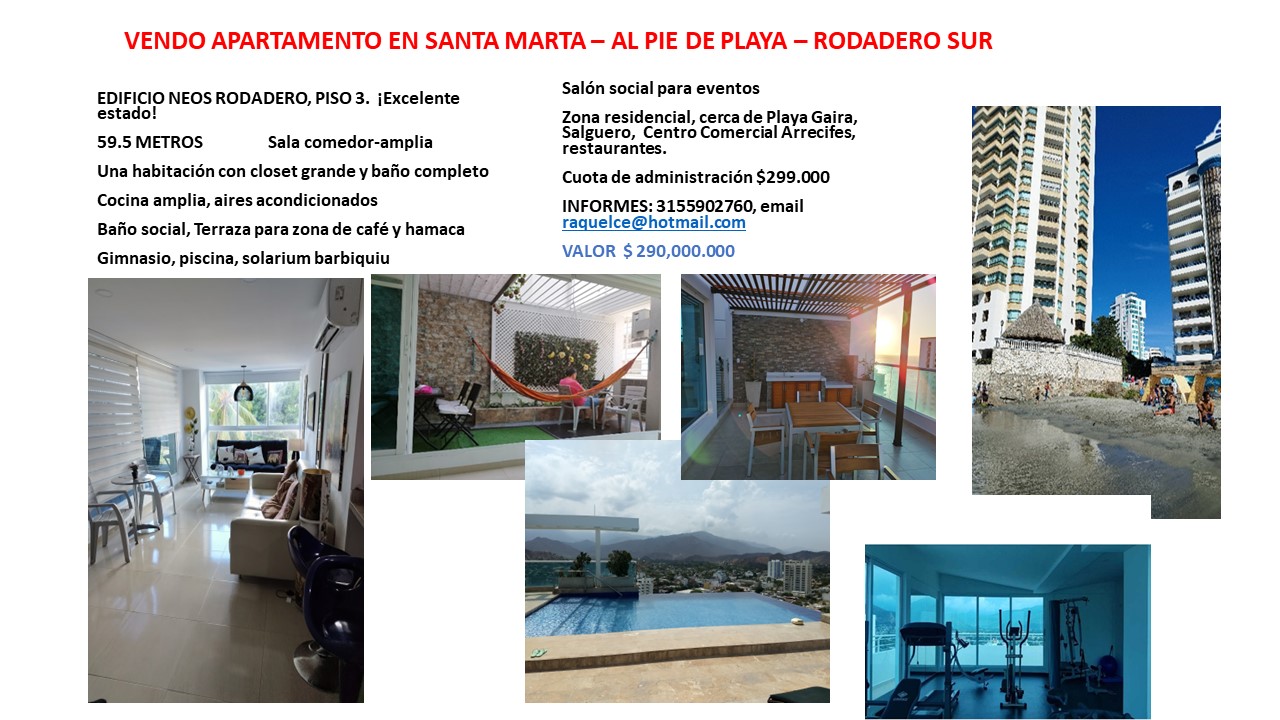 - VENTA DE APARTAMENTO EN SANTA MARTA AL PIE DE LA PLAYA